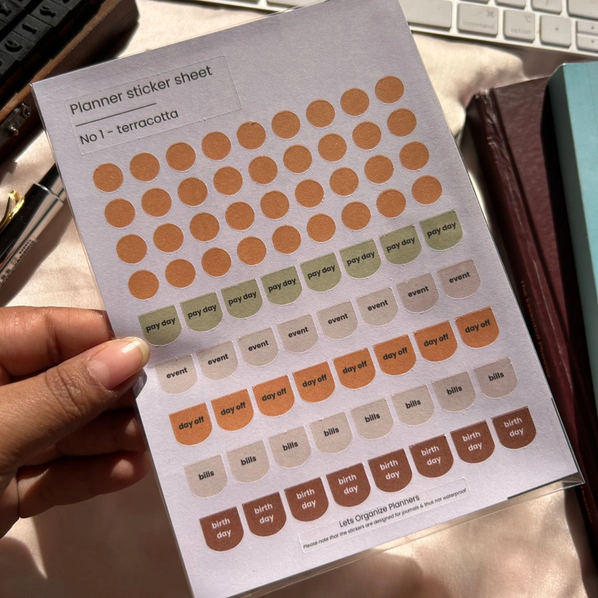 Stay organized in style with the Terracotta Functional Planner Sticker Sheet. Designed in warm, earthy tones, this sheet includes essential labels like pay day, event, day off, bills, and birthday—along with minimalist terracotta dot stickers for flexible planning. Perfect for anyone who wants simple, clean, and effective functional planning with a soft, aesthetic color palette.