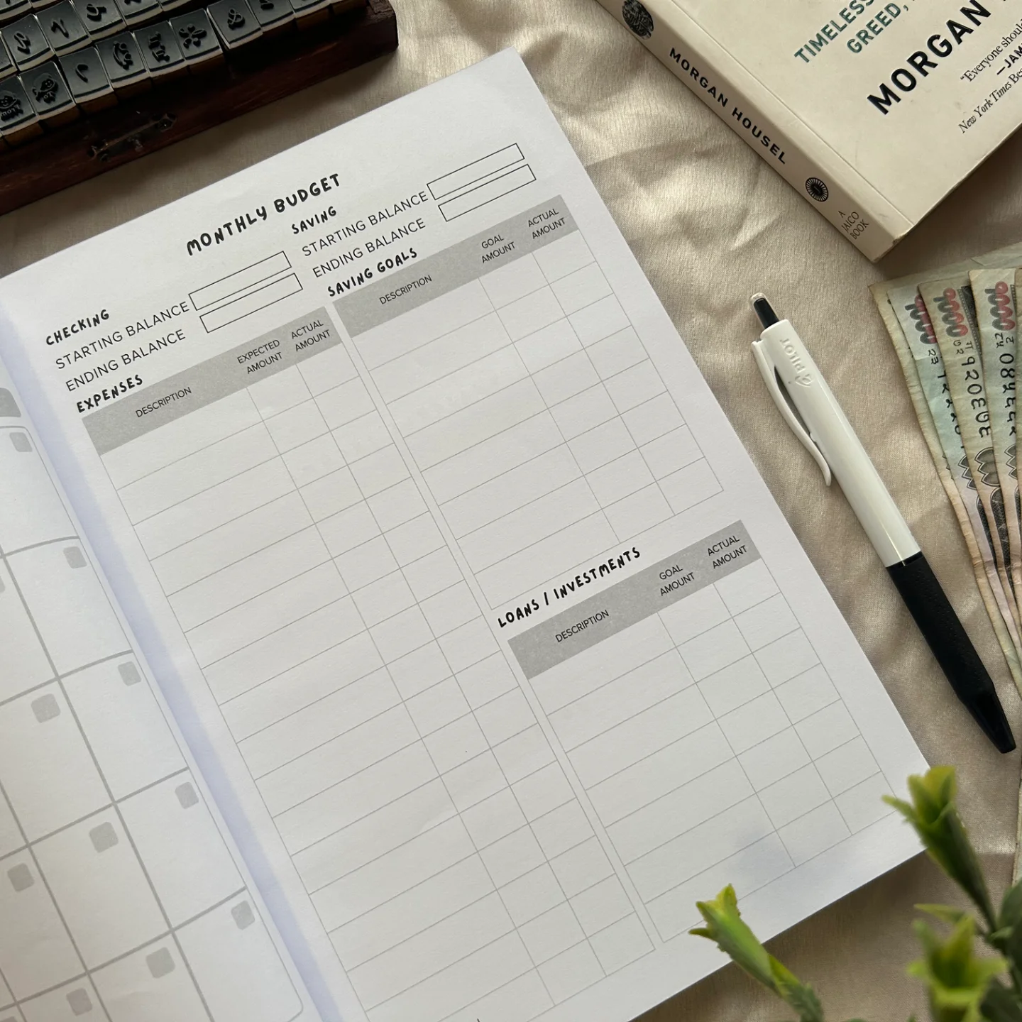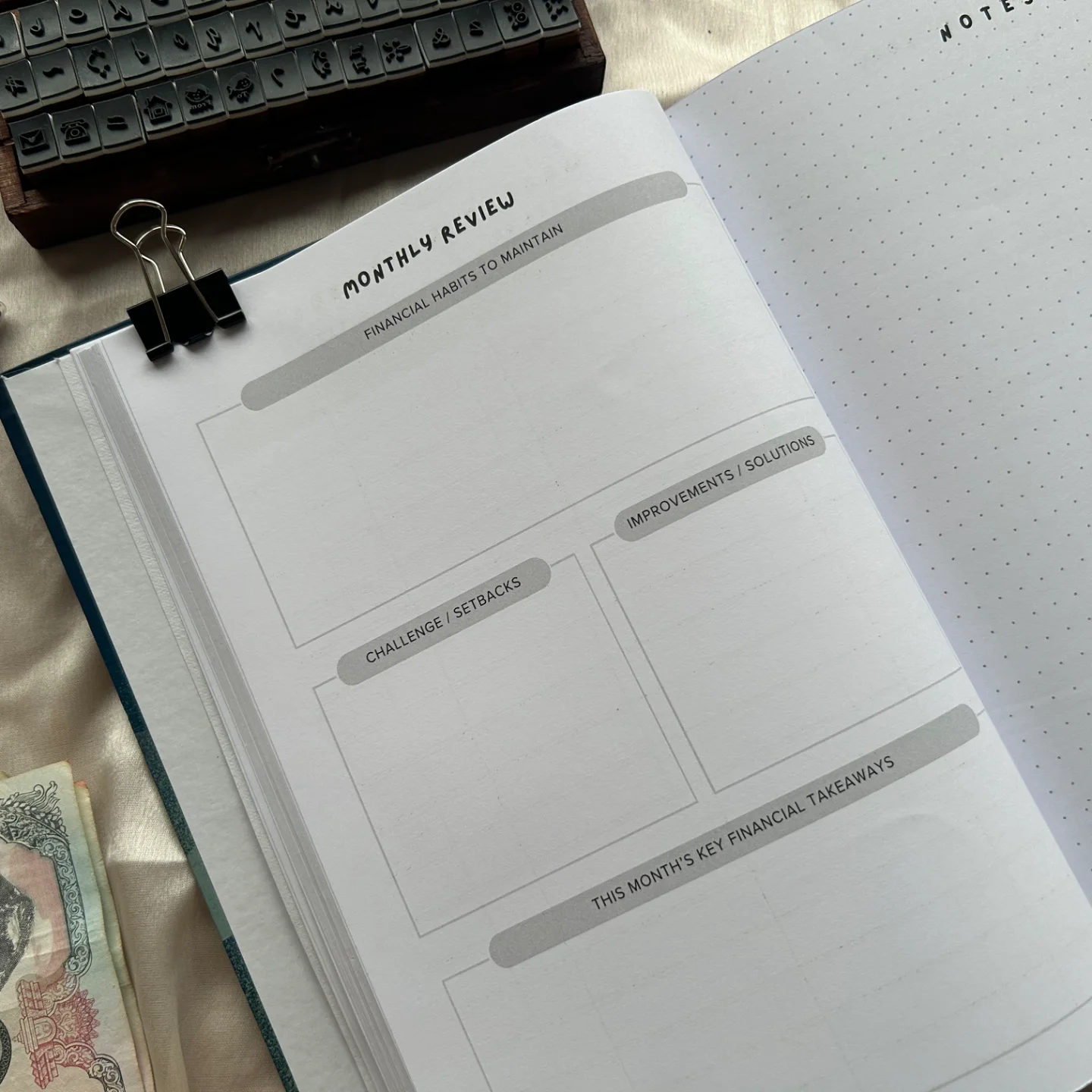 Includes saving challenges and thoughtful prompts to reflect on your monthly wins and lessons.